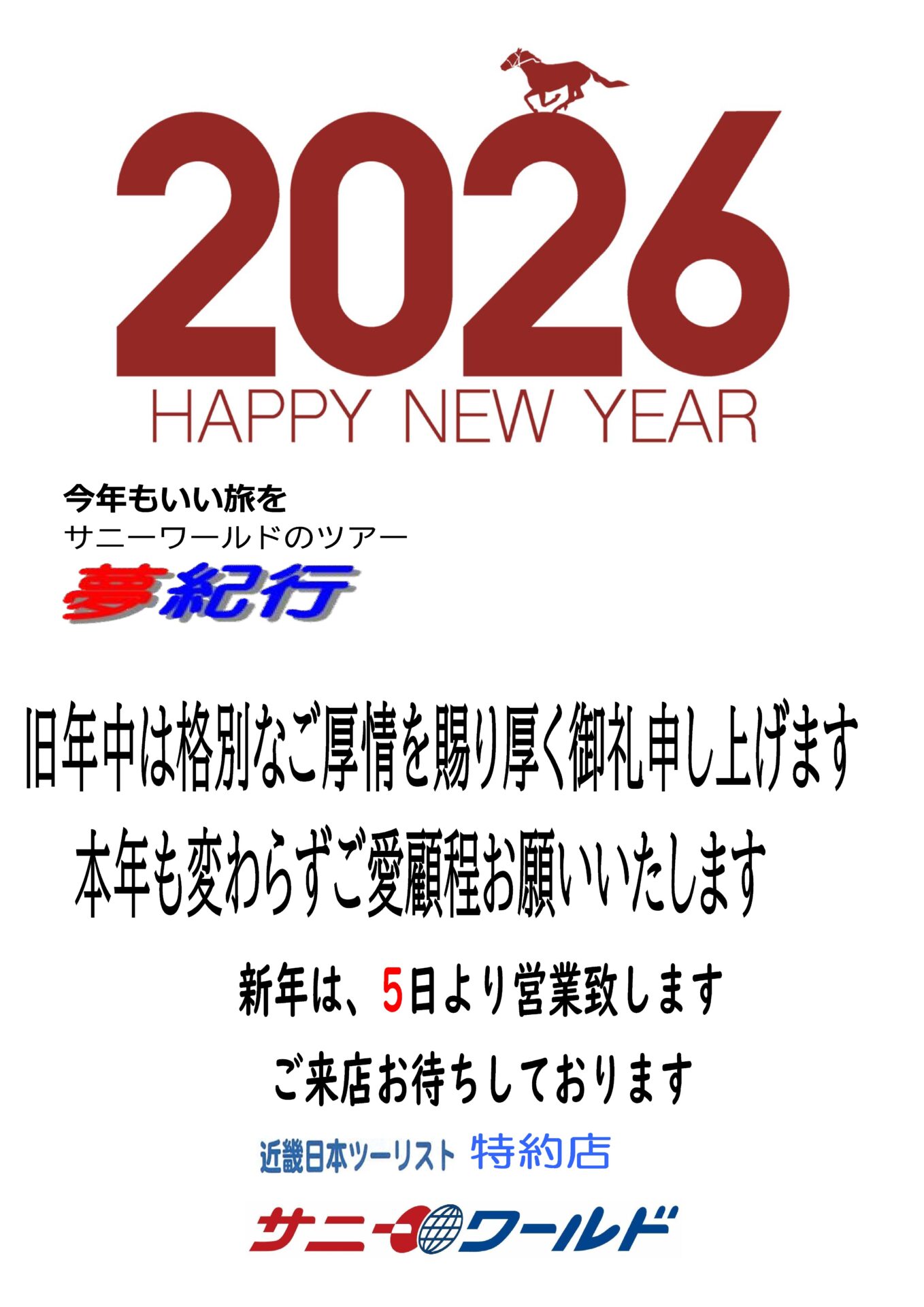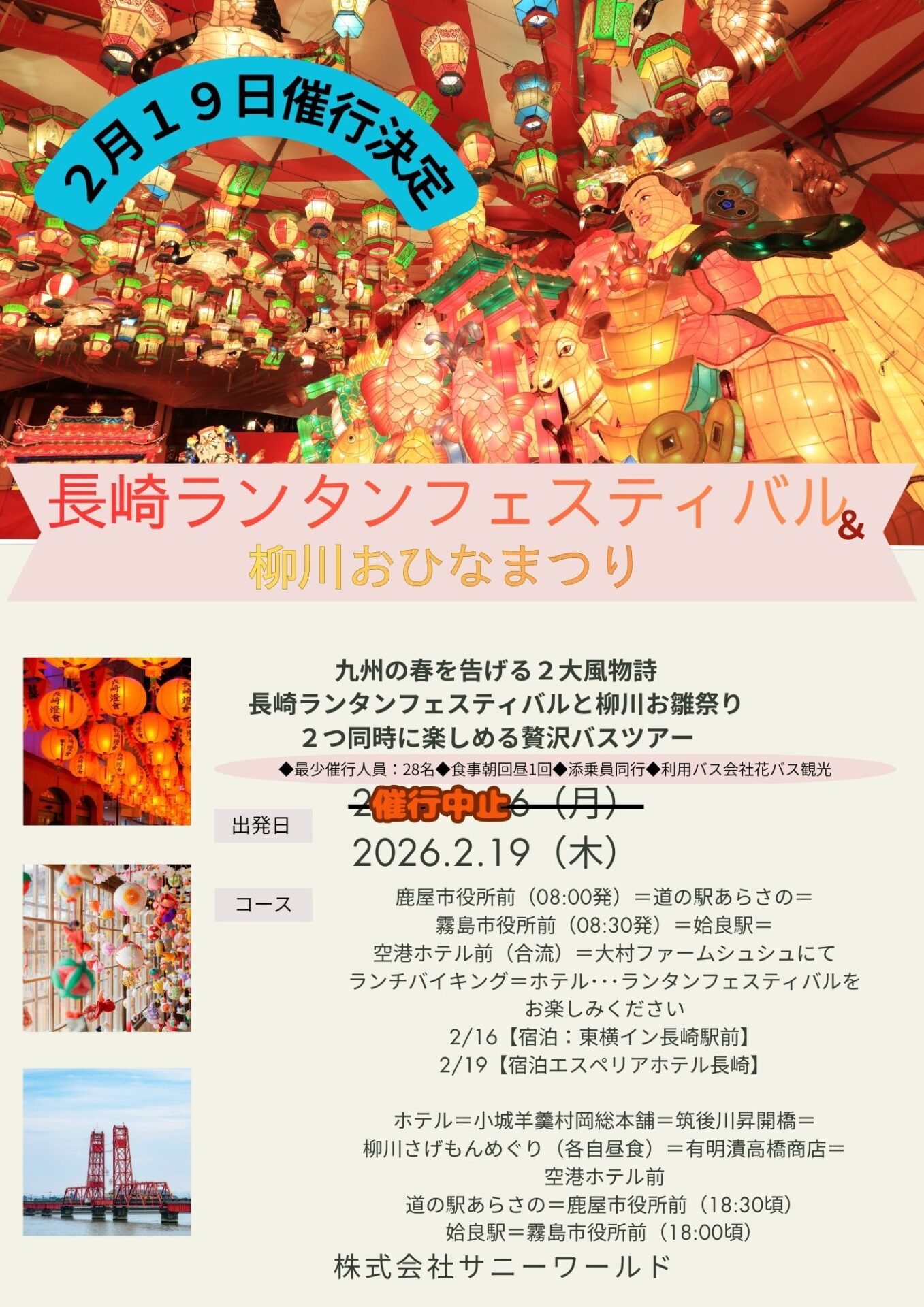 2026.01.23 【2026年】春を呼ぶ夢紀行 ツアー催行決定!! 【2026年】春を呼ぶ夢紀行 ツアー催行決定!! 続きを読む 2026.01.23 ✨第31回「きらめきの日本一周クルーズ」発売間近✨ ✨第31回「きらめきの日本一周クルーズ」発売間近✨ 続きを読む 2026.01.21 春を呼ぶ夢紀行|バスツアーの案内 春を呼ぶ夢紀行|バスツアーの案内 続きを読む 2026.01.01 【2026年】新年のご挨拶|今年も良い旅をお届けします 【2026年】新年のご挨拶|今年も良い旅をお届けします 続きを読む 2025.12.22 【2025年度冬季休業のお知らせ】 【2025年度冬季休業のお知らせ】 続きを読む 2025.12.19 夢紀行公式LINEについて 夢紀行公式LINEについて 続きを読む 2025.10.03 【出発確定】平家落人伝説が息づく秘境・五家荘 錦秋の紅葉め... 【出発確定】平家落人伝説が息づく秘境・五家荘 錦秋の紅葉めぐりツアー 続きを読む 2025.09.27 平家落人伝説が息づく秘境・五家荘 錦秋の紅葉めぐりツアー 平家落人伝説が息づく秘境・五家荘 錦秋の紅葉めぐりツアー 続きを読む 2025.09.24 夜空を彩る感動の競演!第38回やつしろ全国花火競技大会バス... 夜空を彩る感動の競演!第38回やつしろ全国花火競技大会バスツアー 続きを読む 2025.09.10 ホームページリニューアル ホームページリニューアル 続きを読む