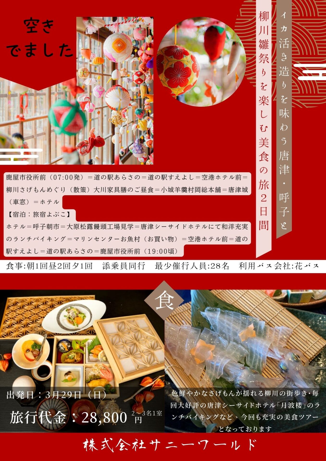 旅行代金:大人28,800円(2~3名様1室)