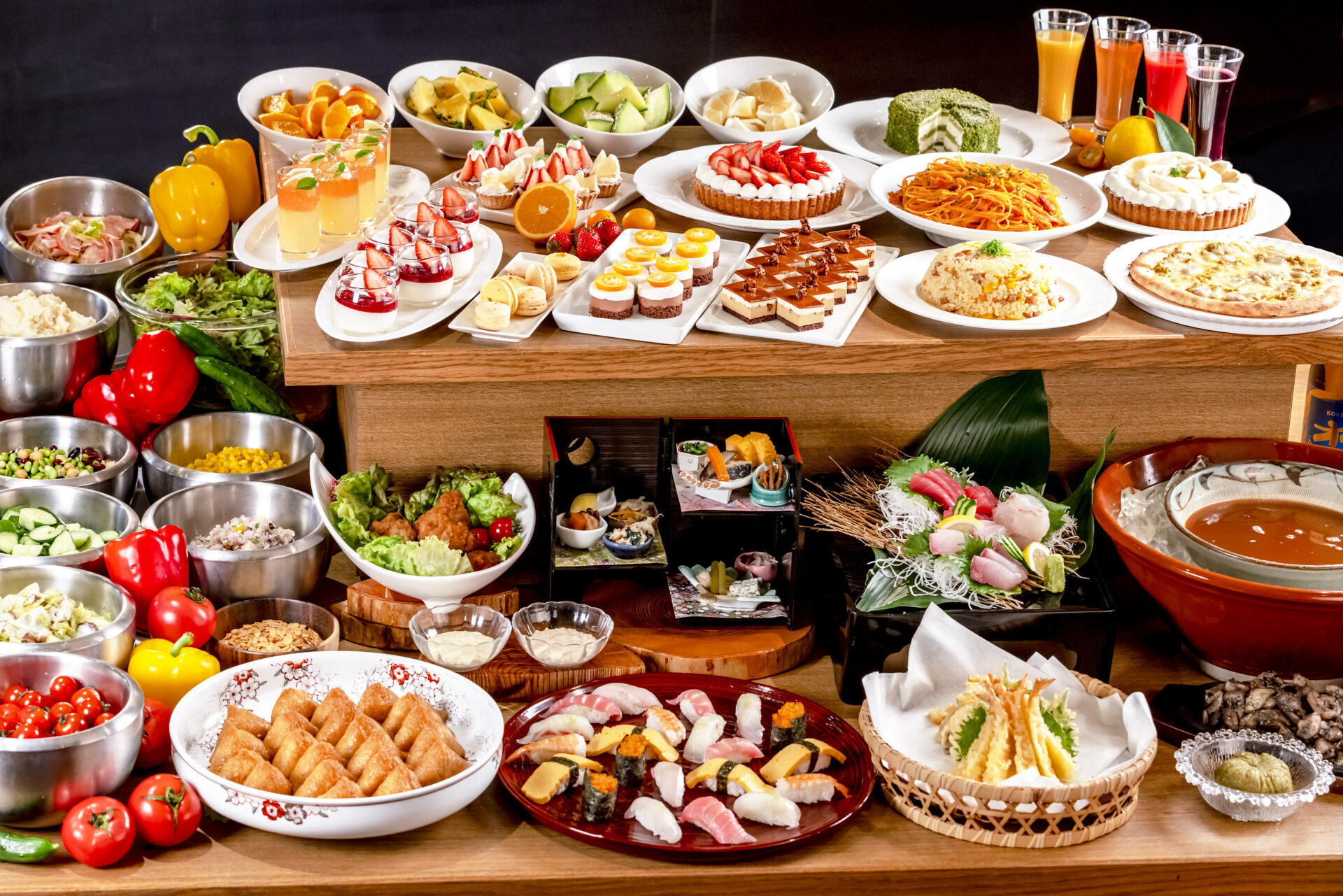 朝は40種類以上、昼・夜は60種類以上のお料理が、ビュッフェスタイルでお召し上がりいただけます。